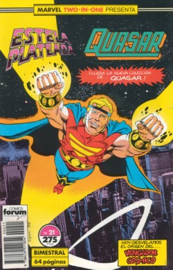 Título: Estela Plateada Vol. 1 # 21 (XII-1990) Importe: € 1.65 - Pts 275 Material Marvel: Silver Surfer Vol. 3 # 28 (X-1989) Silver Surfer Vol. 3 # 29 -parte 1 de 2- (XI-1989) Quasar Vol. 1 # 1 (X-1989)